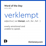 Verklempt - Crossword Clue and Answer Verklempt - Crossword Clue and Answer Verklempt (8) I believe the answer is: overcome (Other definitions for overcome that I've seen before include "Emotionally affected" , "Deal successfully with difficulties" , "hammer" , "Come over in order to conquer" , "Emotional" .) I've seen this clue in the LA Times. Hey! My name is Ross.