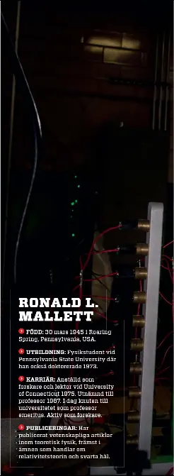Roterande laserljus får tiden att gå bakåt - illvet.se Roterande laserljus får tiden att gå bakåt När han var tio år dog hans far. Ända sedan dess har fysikern Ronald Mallett varit besatt av tidsresor. Enligt Malletts teori kan en roterande laser skapa en spiral tillbaka i tiden - och han tror att tekniska framsteg kommer att undanröja de praktiska hinder som återstår för tidsmaskinen.