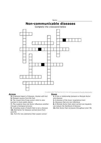 Infectious Disease Crossword - WordMint Crossword with 16 clues. Print, save as a PDF or Word Doc. Customize with your own questions, images, and more. Choose from 500000+ puzzles.
